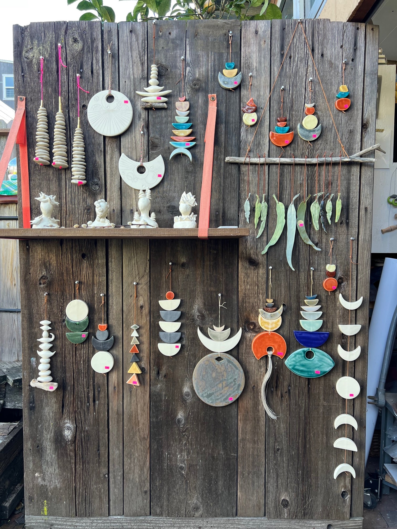 i thoroughly enjoy making these peaceful wall hangings; as the roller coaster of life tends to go, making & designing these is incredibly grounding. i hope they speak to you as well. these pieces are also about my continuing meditation practice; whereby i'm always trying to cultivate ease, peace, calmness & tranquility through daily contemplation & sitting on the cushion! each plaque wall hanging piece is cut, cleaned, measured, sanded, carved, incised with original designs, fired twice, & glazed by hand. the pieces are glazed with a beautiful white matte glaze & this piece is strung on tan & neon pink embroidered cording. these come ready to hang & all of my glazes are non-toxic.