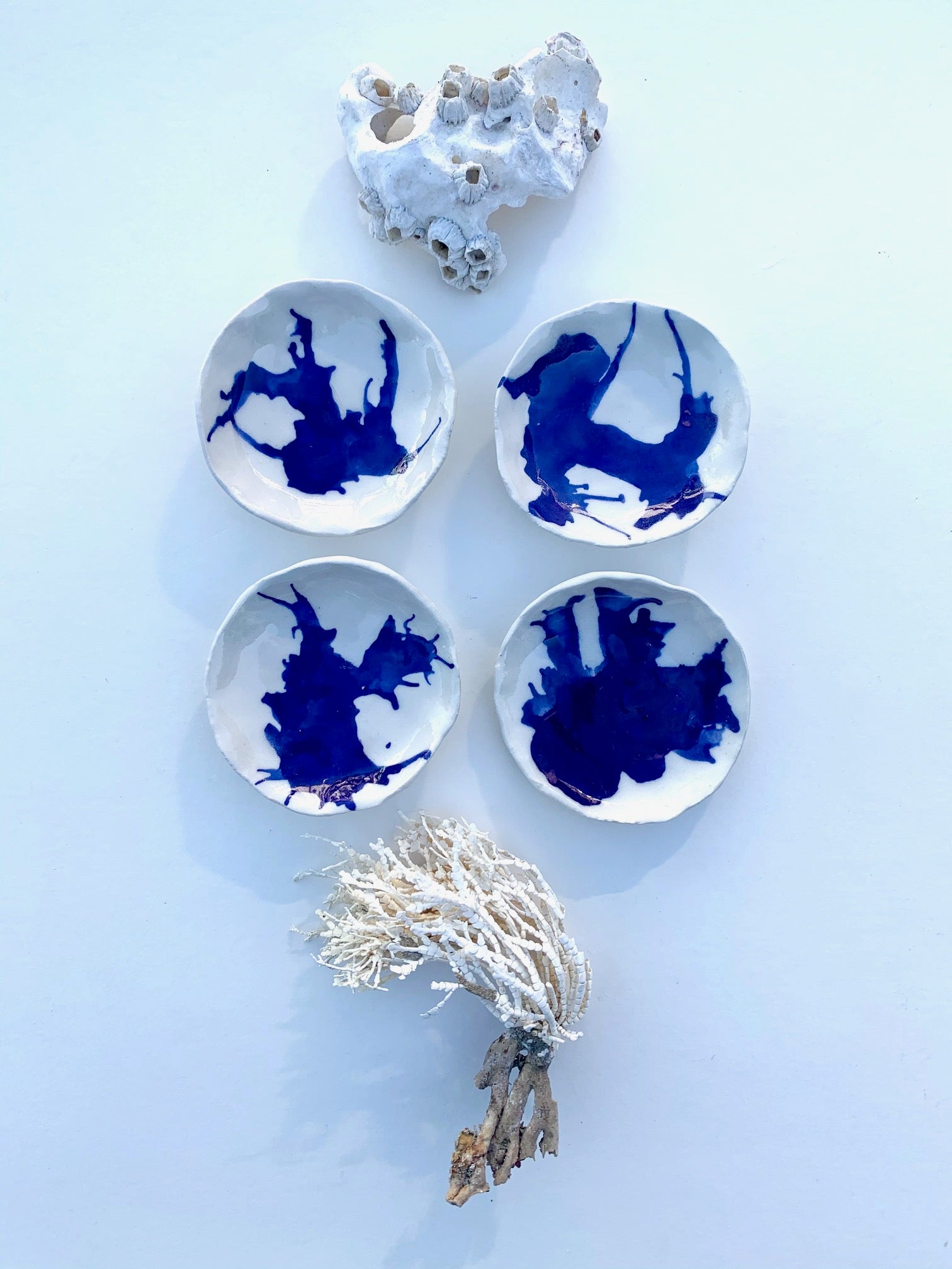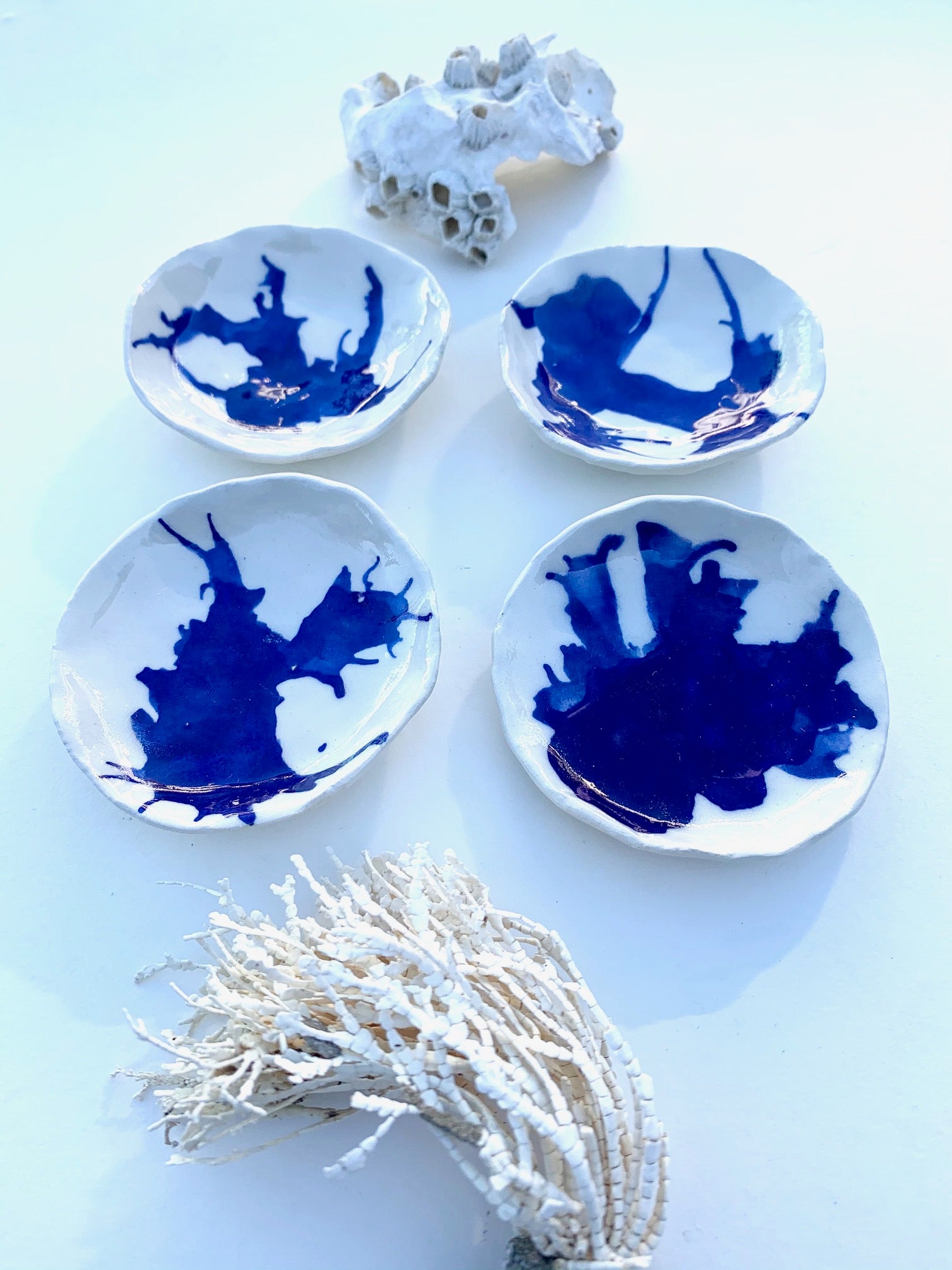 2 cobalt seaweed rests / one of a kind ceramic mini ocean plate sets