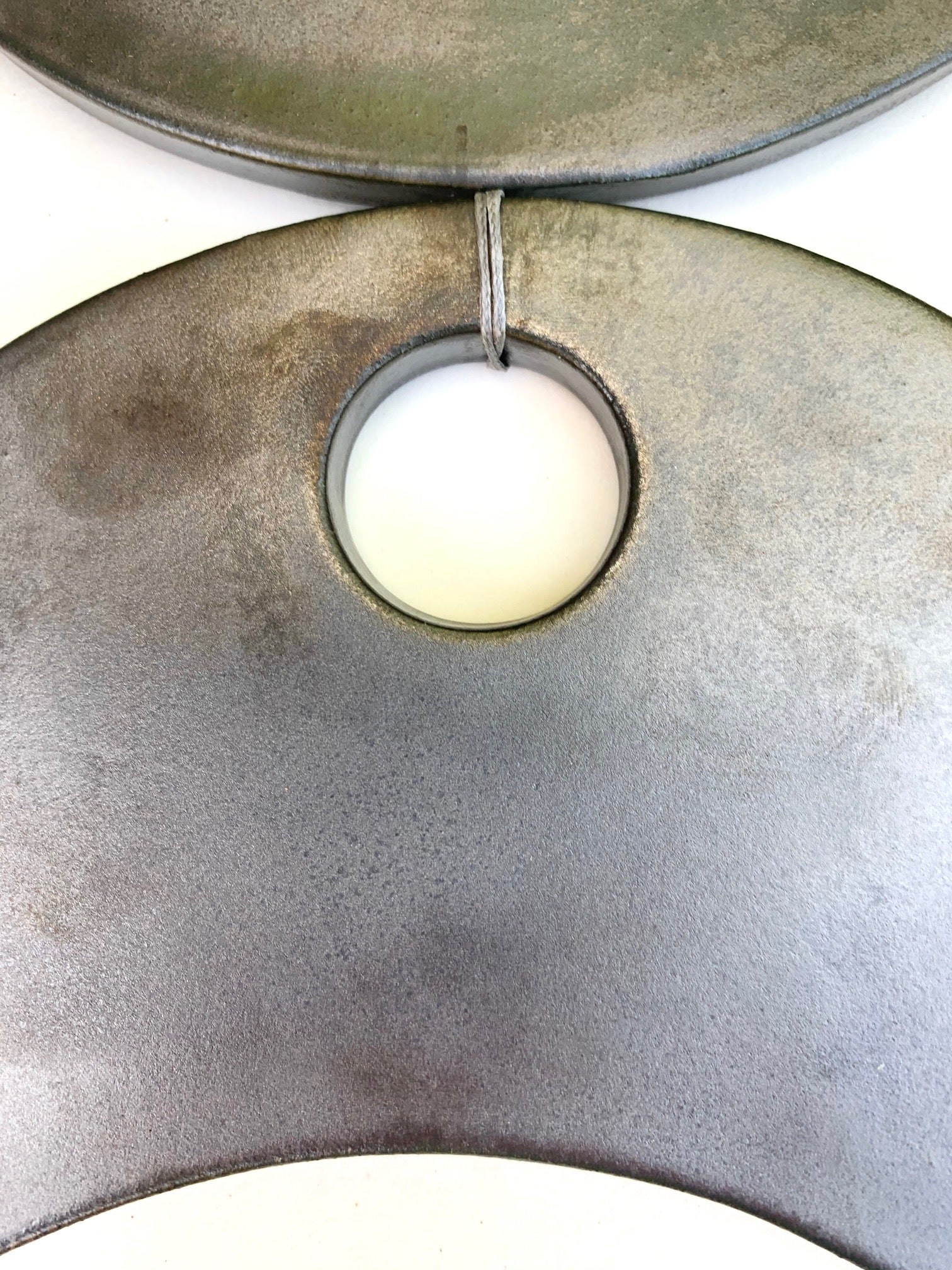 one of a kind 'circles of life' burnished steel moon wall hanging