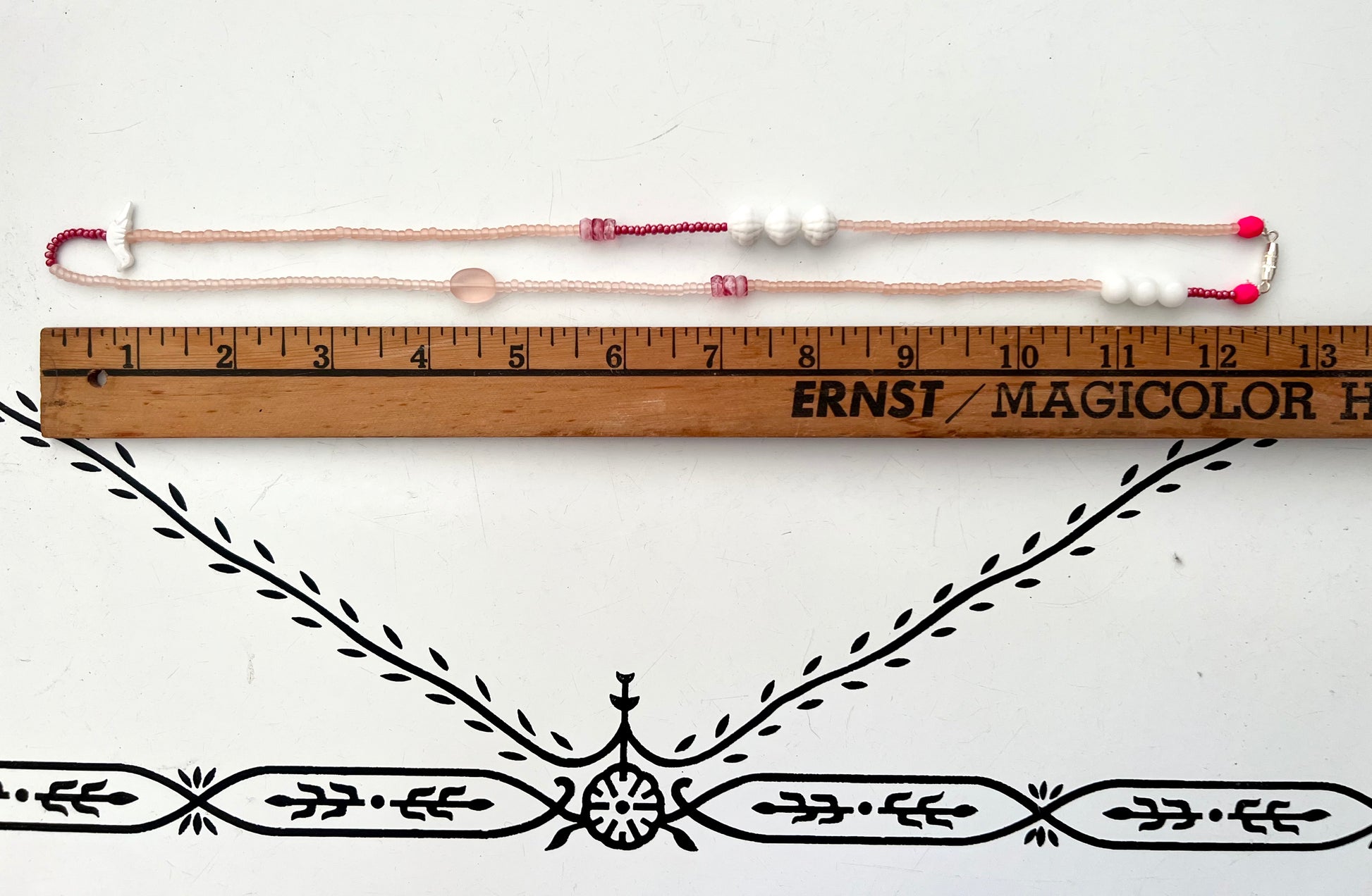 these necklaces are some of my favorite to layer up - sometimes even 4 or 5 stacked up together look so great!  all of these have a mix of different vintage glass, ceramic, lucite, acrylic, & resin beads strung on silk cord with gold or silver finished clasps.  i’ve been holding on to different kinds of seed beads & collectible other shapes of beads for quite a long time.